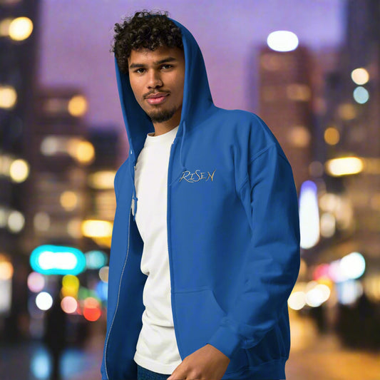 "He Is Risen" heavy blend zip hoodie (Front, Back)